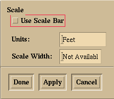 Figure 11.14: Scale pop-up dialog. This dialog allows to specify whether the map scale at the bottom of the map is draw or not.