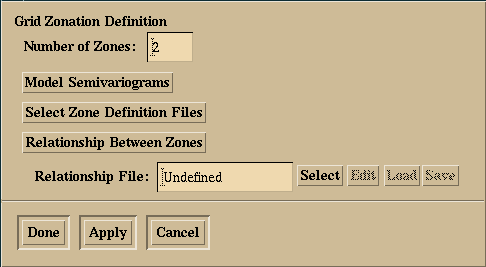 Figure 10.12: Grid Zonation Definition pop-up dialog. This dialog is used to define the number of zones in the grid area, and define the parameters that define each zone.