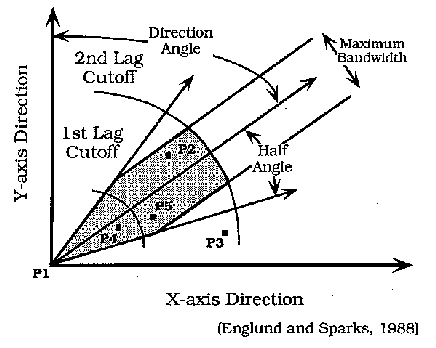 Figure 8.8: Key elements in defining the search for data pairs in the semivariogram