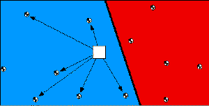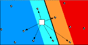 Gradational:Data points from anywhere in either zone maybe used. The semivariogram model from the location being estimated will be applied to all points. |