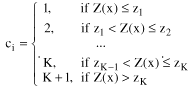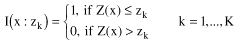 These differences can be described mathematically as follows. Where the data set has been differentiated into a finite number of indicators, it is possible to define a random function (Z(x)) whose outcomes will have values in the range zmin to zmax. From the definition of the indicators, K thresholds can be defined (K + 1 equals the number of indicators) where: