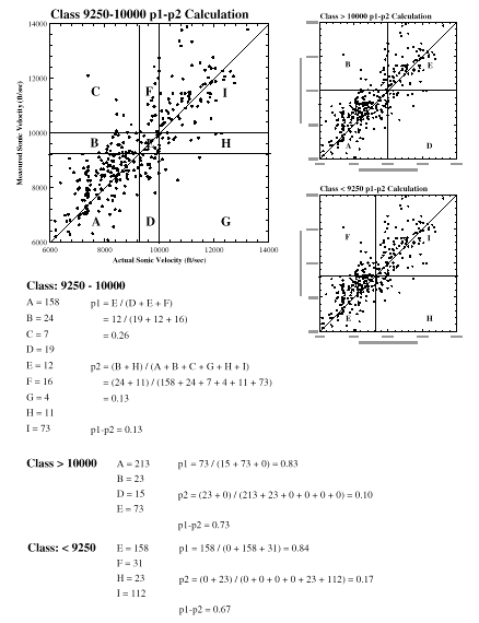 An additional and important difference between class and threshold simulation is the definition and treatment of the difference in the hard data and soft data prior probability distributions. Often, hard and soft data collection techniques suggest different percentages of each indicator occurring at the site. If the simulator uses thresholds, the correction term is based on: